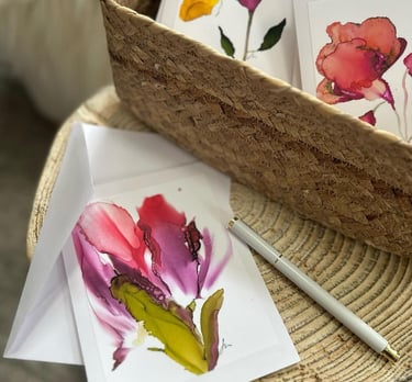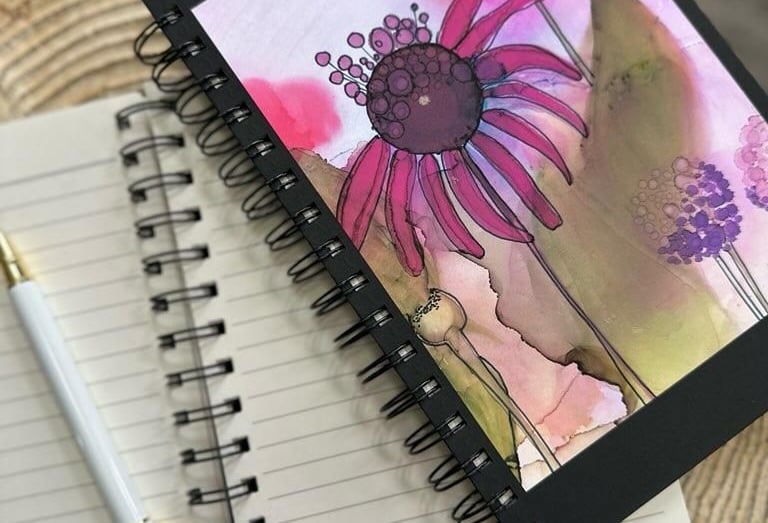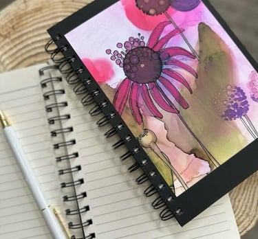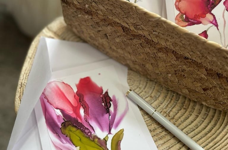whimsical floral art in watercolor and alcohol ink, bursting with color and life